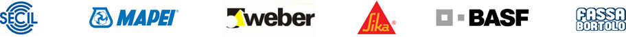Algumas marcas com que trabalhamos: Secil, Mapei, Weber, Sica, BASF, Fassa Bortolo.